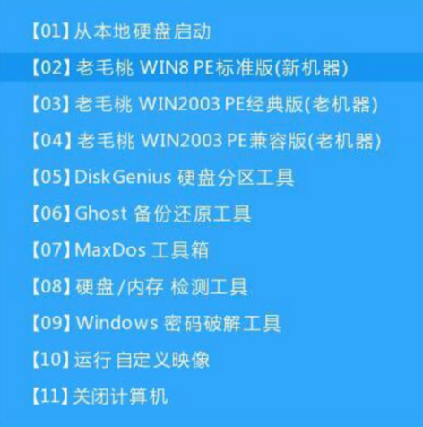 1、首先,将启动u盘插入电脑usb接口,然后开启电脑,接着将光标移至【02】老毛桃WIN8 PE标准版(新机器),按回车键确认。