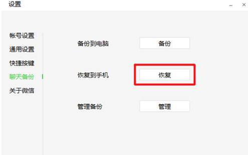 1、若之前有使用过微信PC端备份微信聊天记录,可以进入微信PC端的设置界面,选择“聊天备份”→“恢复”。
