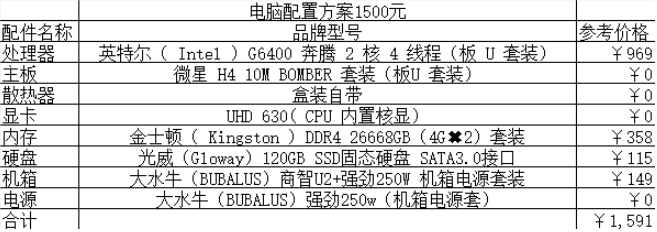 一、1500元配置