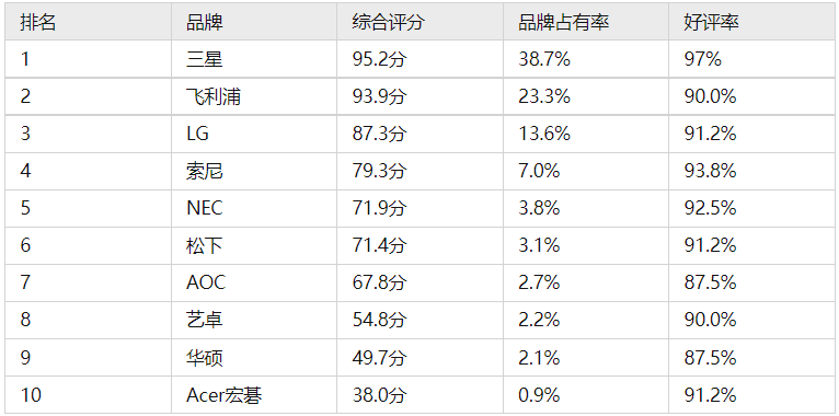 简单介绍下前三名电脑显示器: