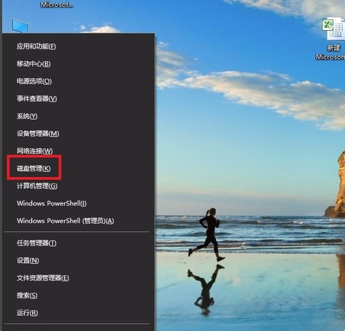1、按键盘上的windows+X组合键,在弹出的选项中选择“磁盘管理”打开。