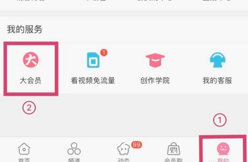 2、进入【我的】,点击【我的服务】里的【大会员】。