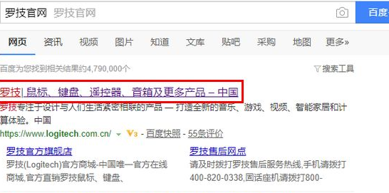 1、首先,在电脑上搜索“罗技官网”几个字,再在结果中点击官网链接进入。
