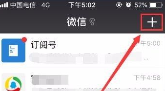 1、首先我们登陆我们的微信,然后点击微信聊天页面右上角的加号。
