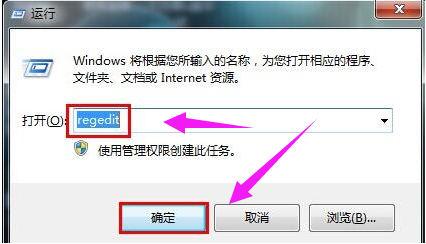 1、使用组合快捷键win键+r键打开运行窗口,输入”regedit”回车确认。