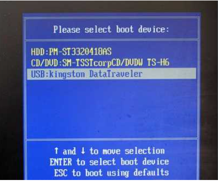 2、把U盘插入电脑,然后开机设置U盘启动:不同的电脑设置U盘启动的方法也不会完全一样,不过一般都会类似,新款的电脑都会有开机快捷键(如F12 F11 F9 F2 ESC 等)调出启动项选择界面!如下图: