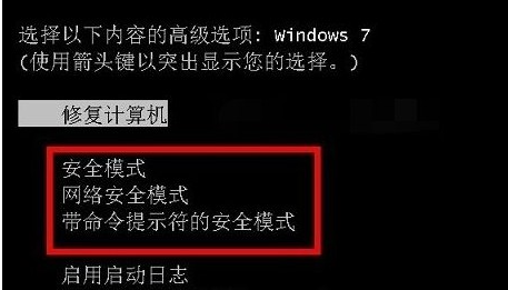 将电脑重新启动,在启动的过程中按不停地按F8键,直到出现启动菜单选择界面,然后就可以根据自己的情况选择对应的安全模式按下回车键进入即可。