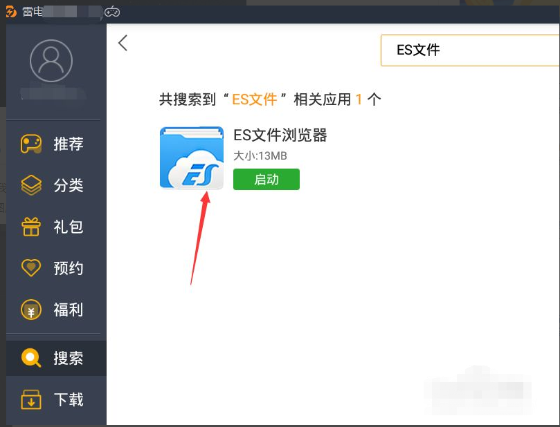 1.首先呢,我们打开模拟器,进入模拟器界面,打开雷电游戏中心。搜索:ES文件浏览器。如下图所示: