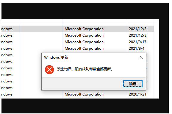 发生错误,没有成功卸载全部更新怎么办?