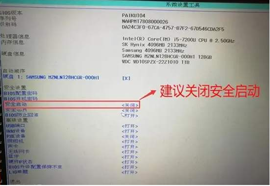 3、使用键盘往下移动,将安全启动(Secure Boot)设置为disabled状态,引导模式选择 uefi 模式。