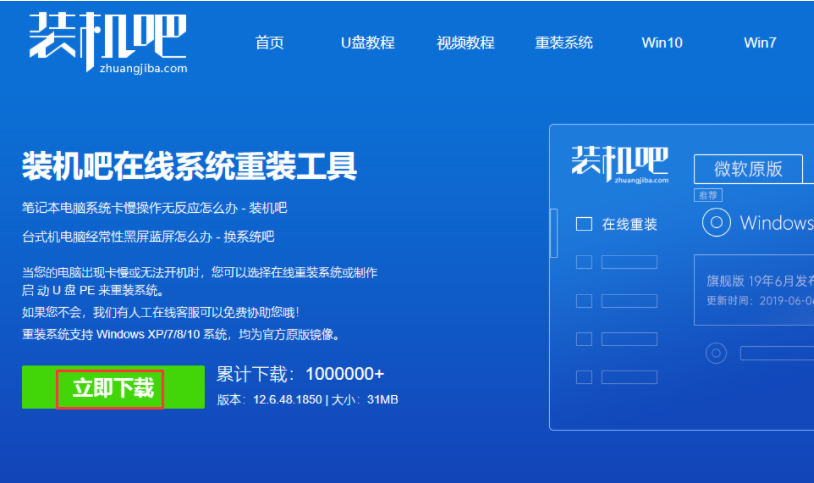 1,先将笔记本电脑内部的重要资料做好备份,打开百度搜索“装机吧官网”到官网上下载装机吧一键重装系统软件。