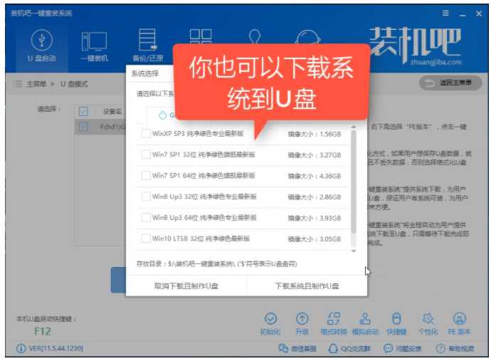 另外,装机吧还提供系统下载,可以不用去找系统那么麻烦,当然如果下载好了最直接跳过下载系统,只需等待下载PE即可开始制作。