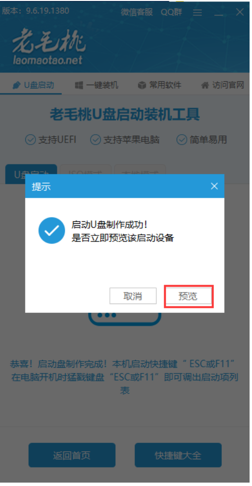 5.完成写入后,在弹出的信息提示框中点击“预览”按钮。