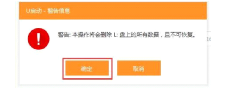 4、此时,系统会弹出警告提示会清除u盘上所有的数据,确认u盘中没有重要文件之后点击“确定”开始制作。(如有重要文件,请先将U盘的文件复制到其他计算机上再开始制作);如图所示: