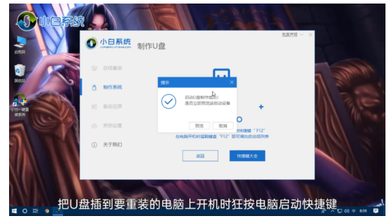 3、制作完成后将U盘启动盘插到需要用PE的电脑上。