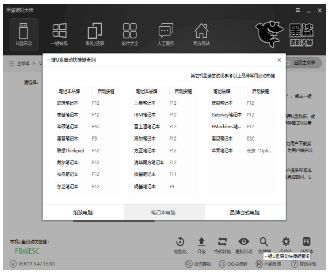 6、然后重启电脑设置U盘启动进入PE重装系统,U盘启动快捷键可以在U盘启动盘制作工具里面查询。