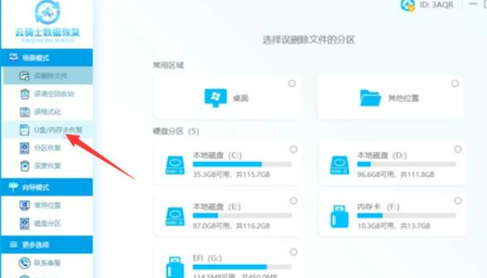 打开云骑士数据恢复软件,点击U盘/内存卡恢复