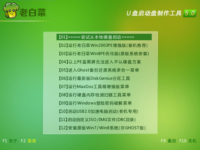 5.选择后按下回车键进行确认,就能进入到老白菜主菜单界面了,如下图所示。