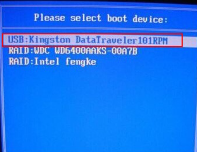 7、将u盘插入电脑,开机按快捷键进入pe系统,选择USB选项,回车。