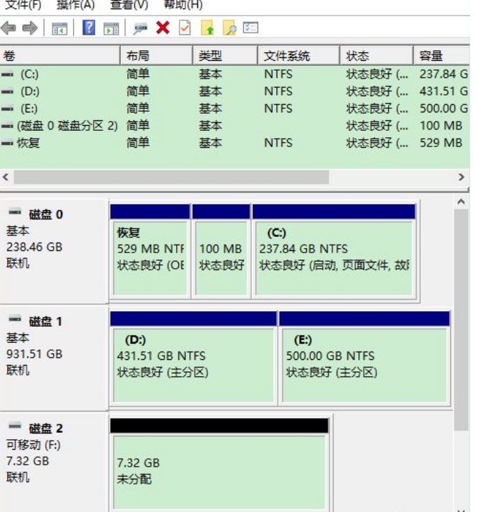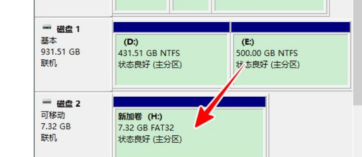 9、最后,点击“完成”,点击之后,U 盘就新建好卷并格式化了。这时,它就可以像普通 U 盘一样使用了。