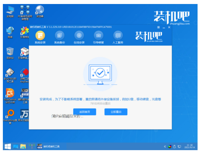 7、然后等待重装完成我们点击立即重启即可。