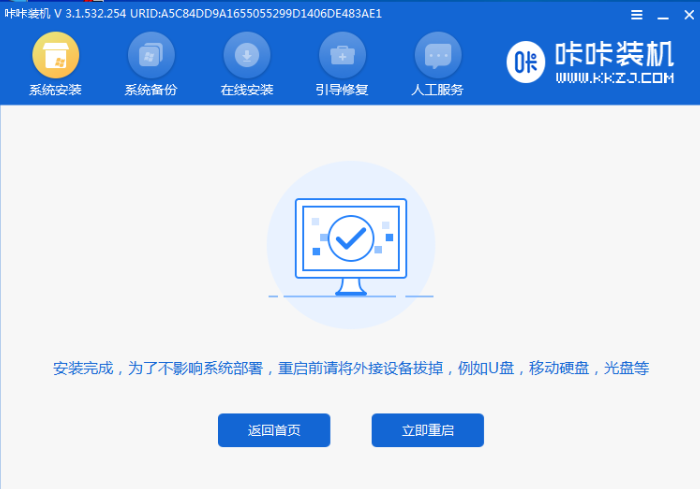 5、在pe系统桌面上打开咔咔装机工具,然后选择系统点击安装。