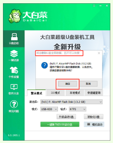 总结:上述就是小编今日分享的大白菜如何制作U盘启动盘的步骤教程啦,你学会了吗?。