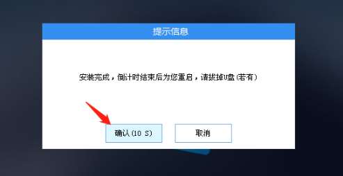 8、系统安装完成后,拔出U盘再重启电脑。
