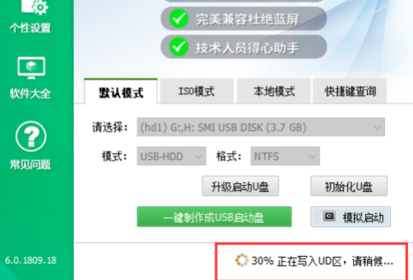 3.点击USB-HDD和NTFS,一键制作USB启动盘。