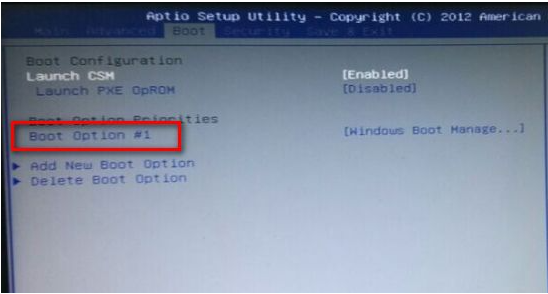 2、在“boot”菜单下选中“bootoption#1”;