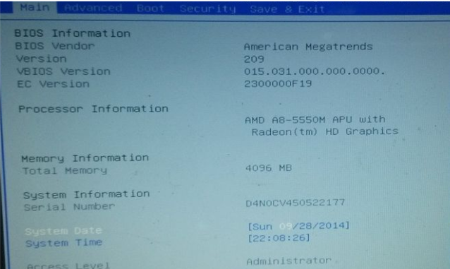 1、重启电脑按“F2”键进入bios;