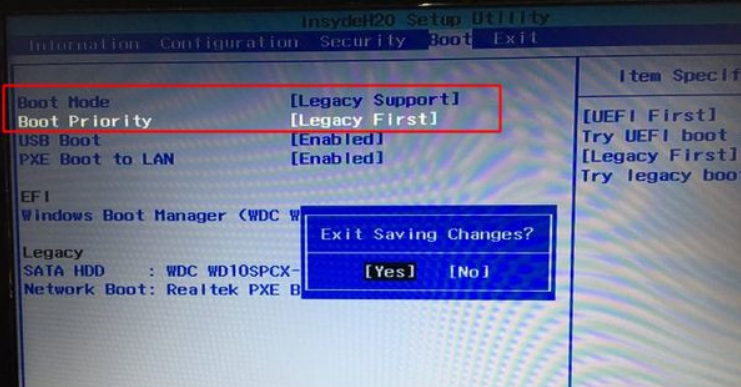 4、来到Boot界面,将Boot Mode设置成Legacy Support,Boot Priority设置成Legacy First,USB Boot设置成Enabled,全部设置好后按F10或Fn+F10保存重启。