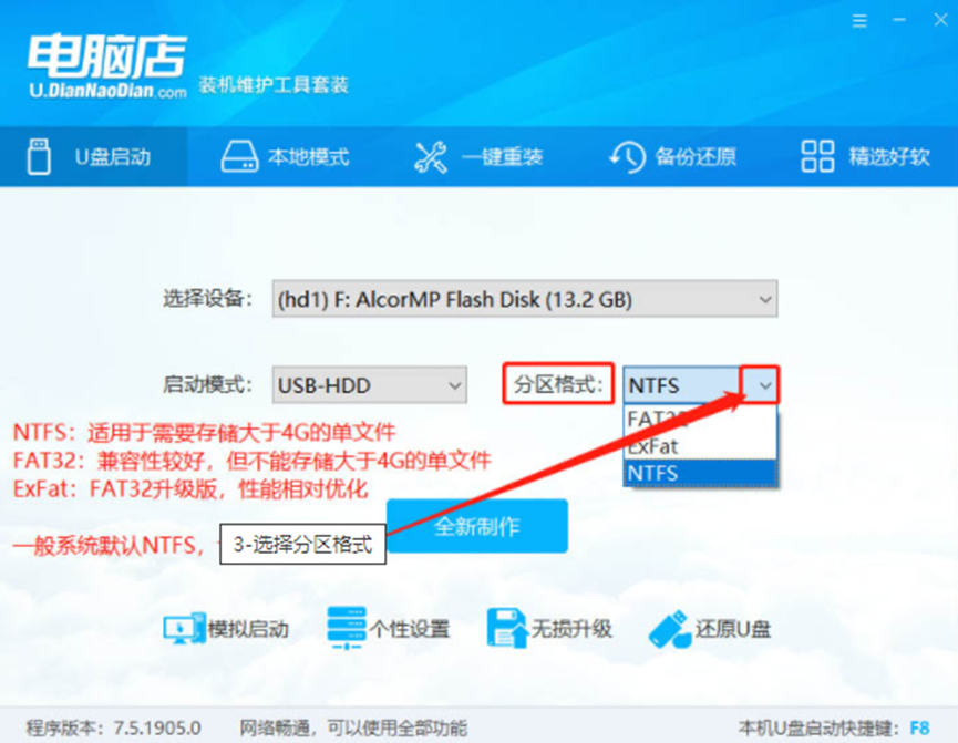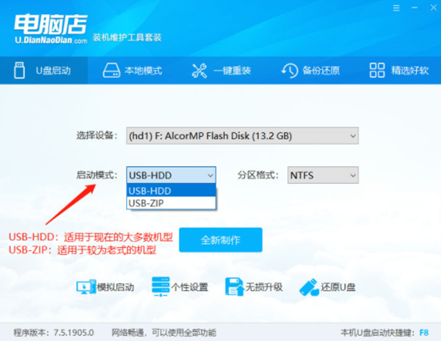 u盘重装系统的前提是先制作好u盘启动盘,但是很多网友不知道如何制作u盘启动盘,其实我们可以借助网上的一些工具轻松实现,比如说电脑店u盘启动盘制作工具。下面小编就给大家分享下电脑店u盘启动盘制作工具使用方法。 工具/原料: 系统版本:windows 10 品牌型号:联想小新air 13 软件版本:电脑店装机维护工具 方法/步骤: 步骤一:制作U盘启动盘 1、下载并运行电脑店u盘装机工具,插入U盘。 2、选择“u盘启动”,点击需要制作启动的设备,模式选项中选择“USB-HDD”,格式选择“NTFS”。 3、点击“全新制作”。 4、在信息提示窗口中,点击“确定“。 5、电脑店U盘装机工具,会自动对U盘写入电脑店相关数据。 6、完成U盘启动盘制作。下载一个windows系统镜像文件准备安装,下载完毕后存放到u盘启动盘里,随后可开始重装系统。 7、下载一个windows系统镜像文件,搜索msdn itellyou进入,在界面中点击“操作系统”,选择需要的系统版本,复制ed2k链接进行下载。 8、下载完成后,找WIN7 ISO/GHO镜像拷贝到U盘目录。 步骤二:U盘设置为优先启动项。 1、查询自己电脑机型的U盘启动快捷键,重启出现开机画面时按下此键,进入优先启动项设置界面,通过“↑↓”键选择U盘选项后按回车键进入电脑店winpe界面,,选择带有USB字样的或者选择自己的U盘名称标识。 2、进入电脑店主菜单后,通过“↑↓”键选择【1】后回车确认,成功进入winpe。 步骤三:开始重装系统。 1、双击“电脑店一键装机”,选择“安装系统”,点击“打开”,找到并选中Windows镜像文件。 2、选择Win 7 系统镜像后,点击“系统盘(c盘)”后点击“执行”。 3、勾选win7系统的网卡和usb驱动安装,点击“是”。 4、进行安装时,勾选“完成后重启”重启电脑并拔掉U盘。 5、等待电脑就会进入Windows系统完成部署。 6、成功安装系统后,电脑会自动激活系统并安装驱动程序,耐心等待部署完成。 总结: 1、制作U盘启动盘。 2、U盘设置为优先启动项。 3、重装系统。
