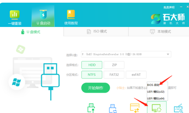 4、制作成功后,要点右下角的bios启动键测试是否制作成功。