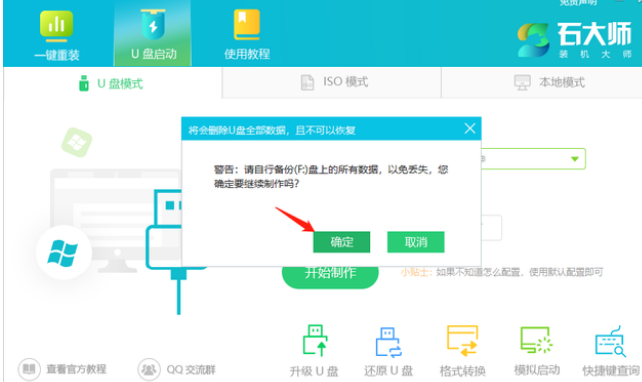2、制作U盘时,系统会提示你让你做好数据备份。