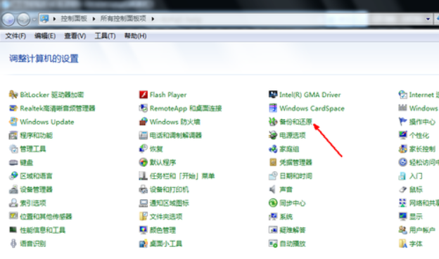 1、在开始菜单中打开控制面板,打开控制面板之后,在控制面板的众多选择项中打开备份和还原选项。(找不到可以将右上角的类别改为小图标)