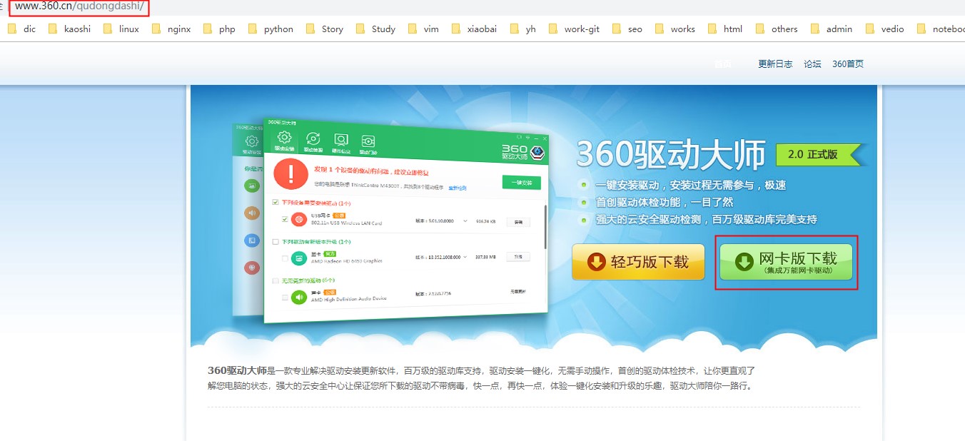 我们安装360网卡驱动大师来解决问题,请注意官网地址:http://www.360.cn/qudongdashi/。