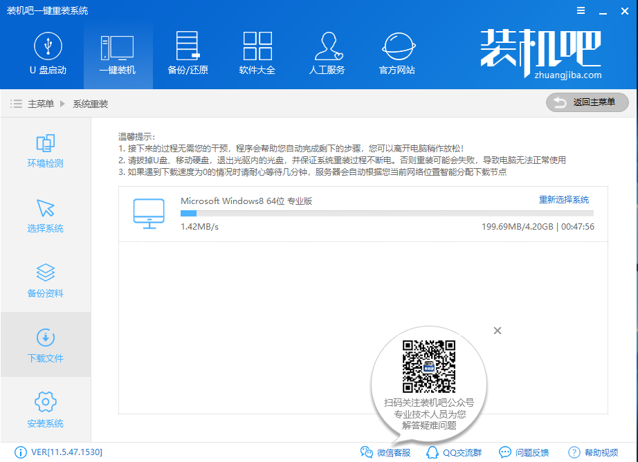 装机吧一键重装win8系统教程