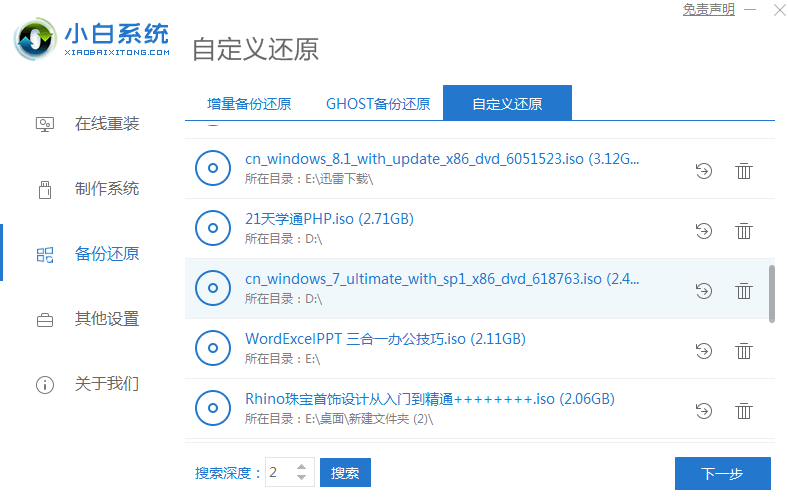 2.此时,软件将自动检测下载在您计算机上的win7系统图像。