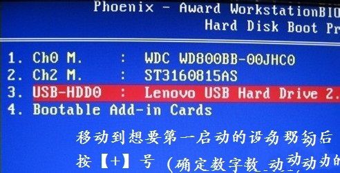 我把光标移动到需要启动的3那行(也就是USB),然后按【+】号它就向上排列,在第一行中出现了。
