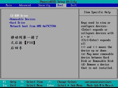 让需要优先启动的设备排列到第一行之后就可以按【F10】,然后回车--这样就算搞定优先启动顺序了,重启之后你插入的安装盘U盘就会优先启动。