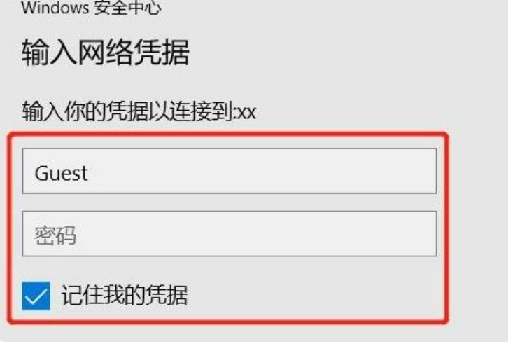 11、在弹出的界面里用户名:Guest,密码不用填,然后勾选记住我的凭证。