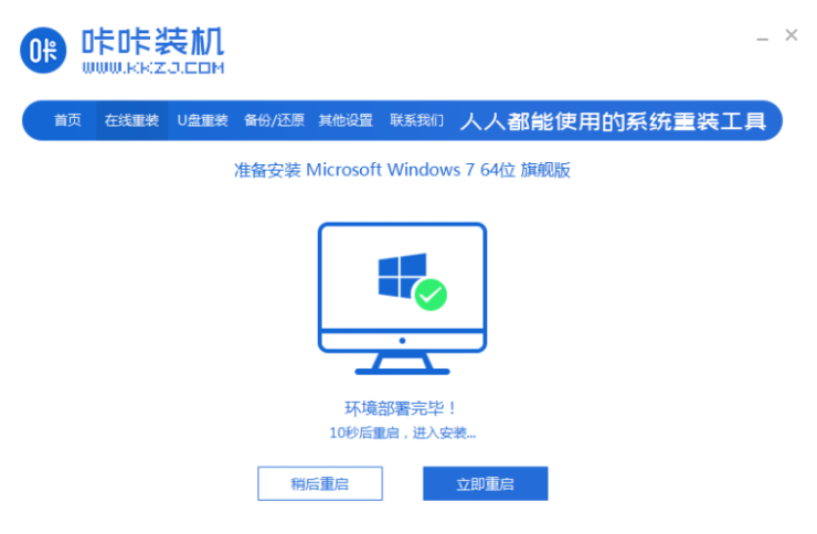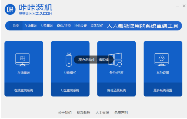 1.笔记本电脑重新装回win7系统呢?首先打开电脑浏览器搜索下载咔咔安装软件,打开咔咔安装点击在线重新安装系统。