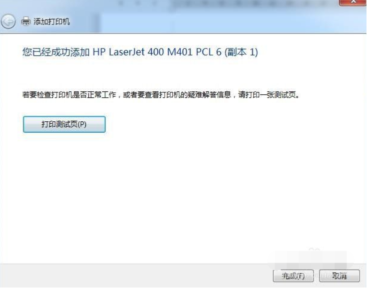7、之后就点击下一步直到到安装成功页面就可以了,可以选择“打印测试页”进行测试下打印机是否安装成功,如果能打印出测试纸,就证明打印机已成功安装