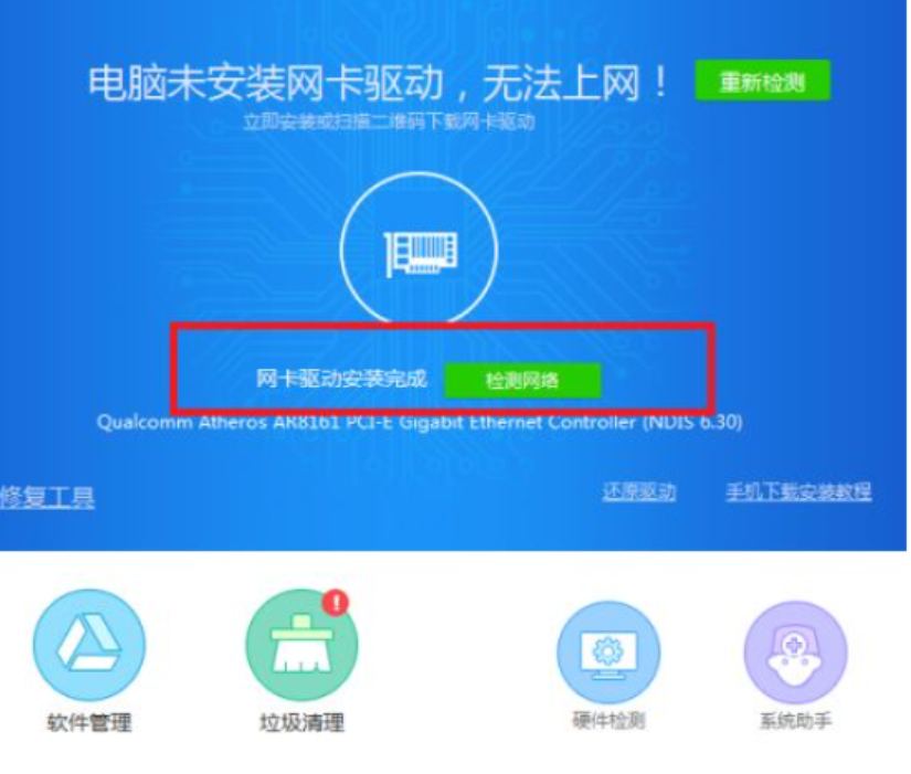 等待软件检测提示后点击相应按键修复网卡驱动即可。