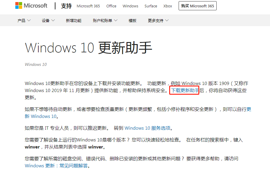 借助微软的win10更新助手工具升级系统: