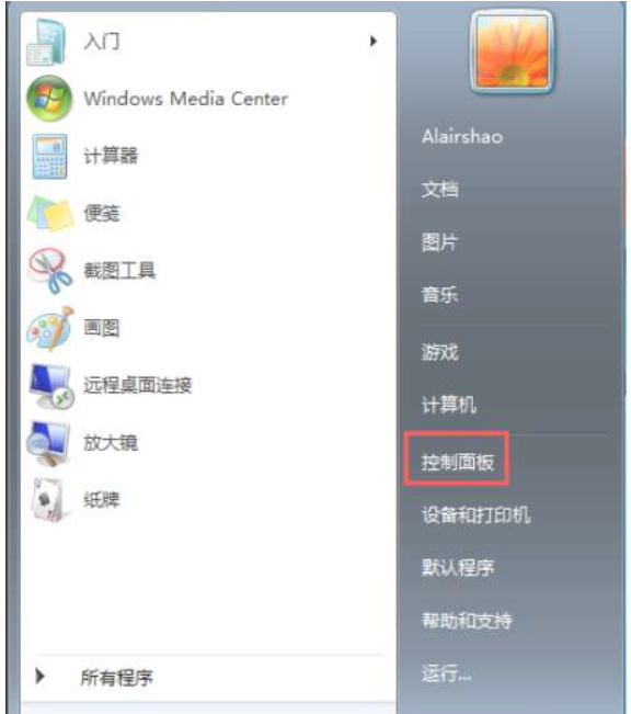 1、进入控制面板;