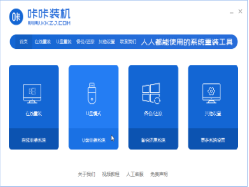 1、打开下载好的咔咔装机软件,选择U盘重装系统。