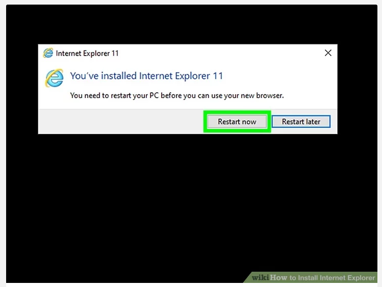 5、单击立即重新启动以重新启动。请务必先保存所有打开的文件。一旦您的计算机重新启动,Internet Explorer 就可以使用了。您可以通过在“开始”菜单中单击 Internet Explorer 来启动它。