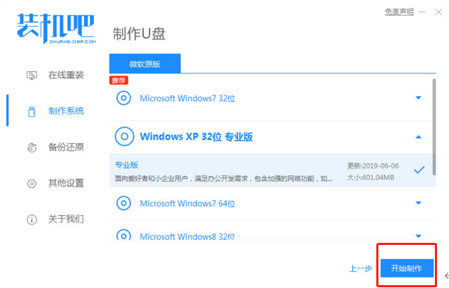 2、选择要安装的系统版本,点击开始制作。